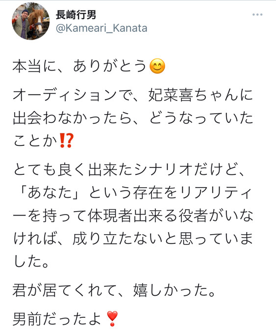 長崎行男@Kameari_Kanata@yano_hinaki35 本当に、ありがとう😊