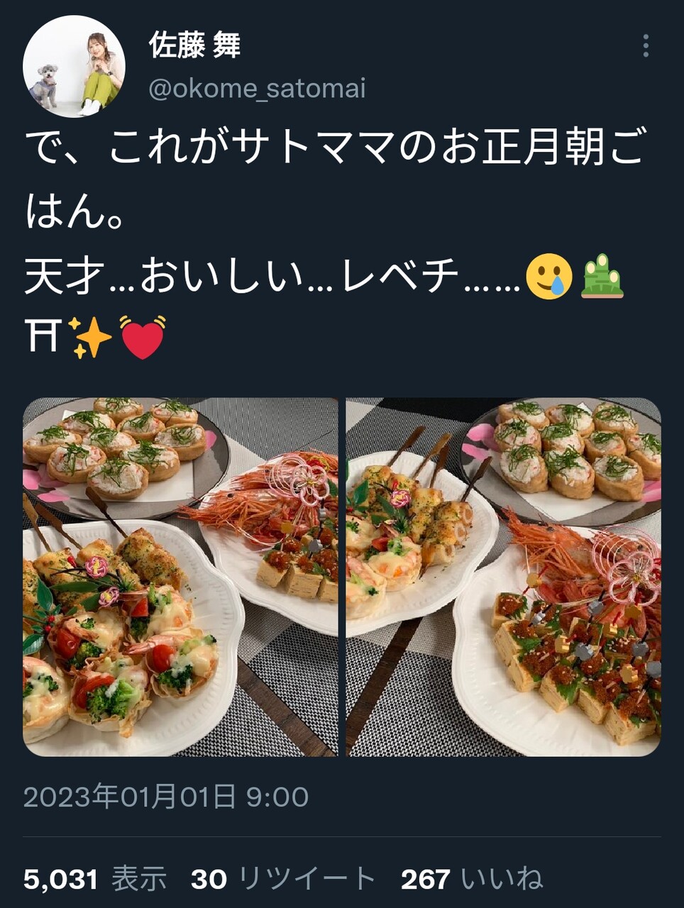 天才…おいしい…レベチ……🥲🎍⛩✨💓 https://t.co/AiJH3WyRJ42023/01/01 09:00:53