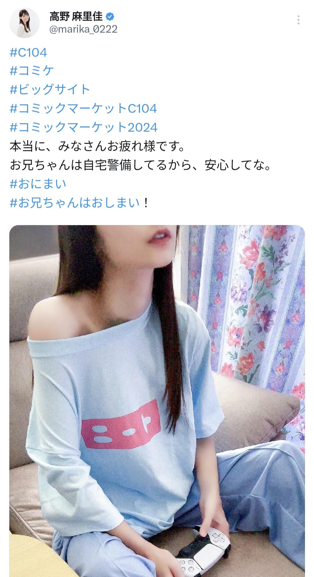 お兄ちゃんは自宅警備してるから、安心してな。#おにまい#お兄ちゃんはおしまい! pic.twitter.com/uFSnxjHu4i— 高野 麻里佳 (@marika_0222) August 12, 2024