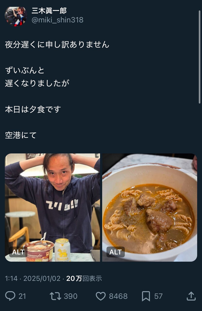 空港にて pic.twitter.com/rWhQ1fvEye— 三木眞一郎 (@miki_shin318) January 1, 2025